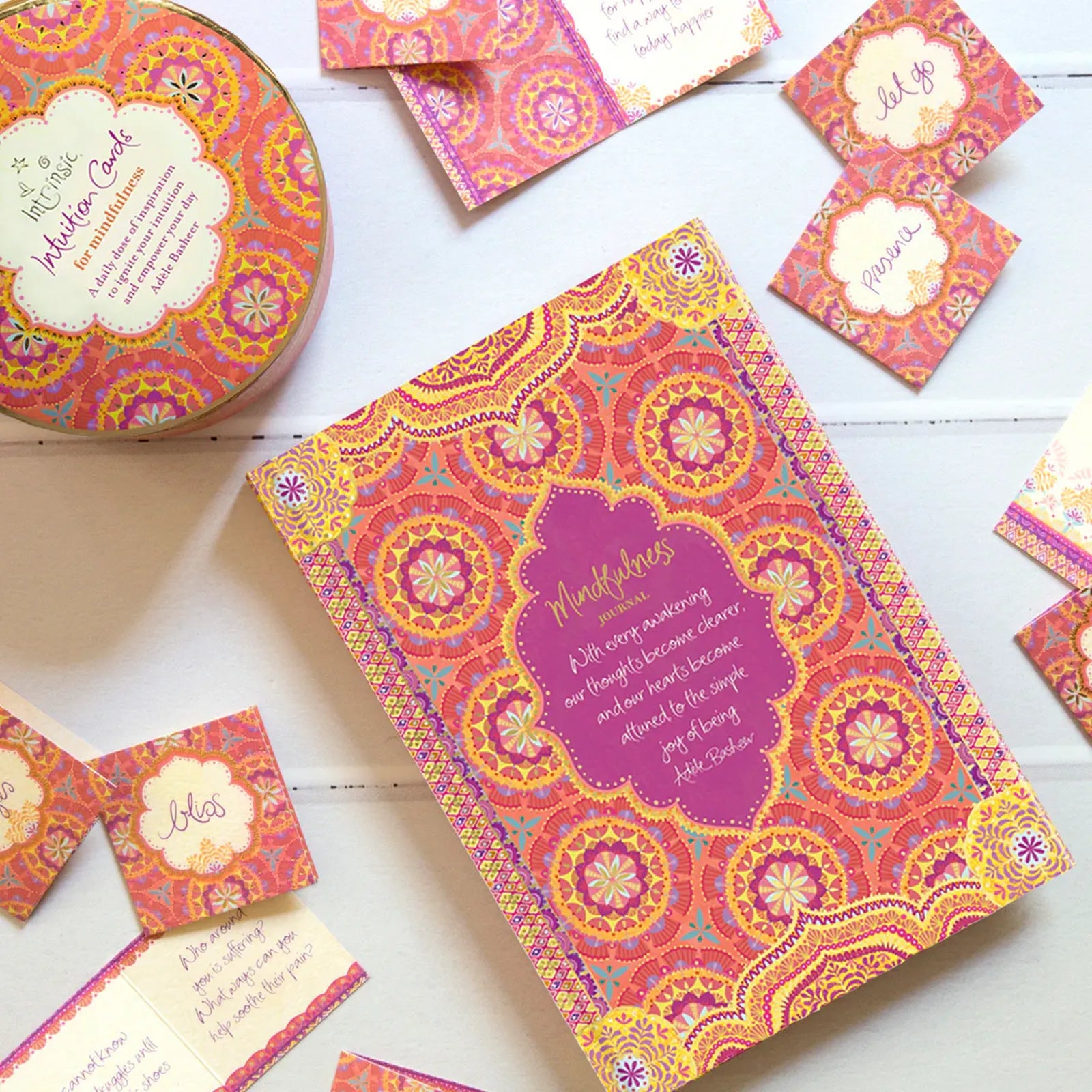 Unit price perCapture the calm and create more intentional living with the Mindfulness Journal by Intrinsic. This A5 hardcover journal (152 pages) features a thoughtful blend of blank pages, guided journaling prompts, mini‑activities and motivational quotes by Adèle Basheer, all printed on FSC‑certified 100 gsm paper with vibrant patterned borders.