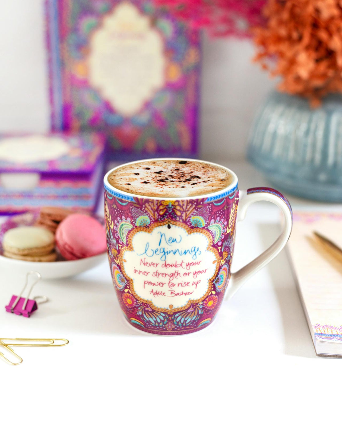 Welcome fresh starts with the New Beginnings mug by Intrinsic — featuring an uplifting design, gold foil accents and a message of hope for the journey ahead. It’s crafted in Australia from fine porcelain, holds approx 350 ml and comes beautifully boxed.