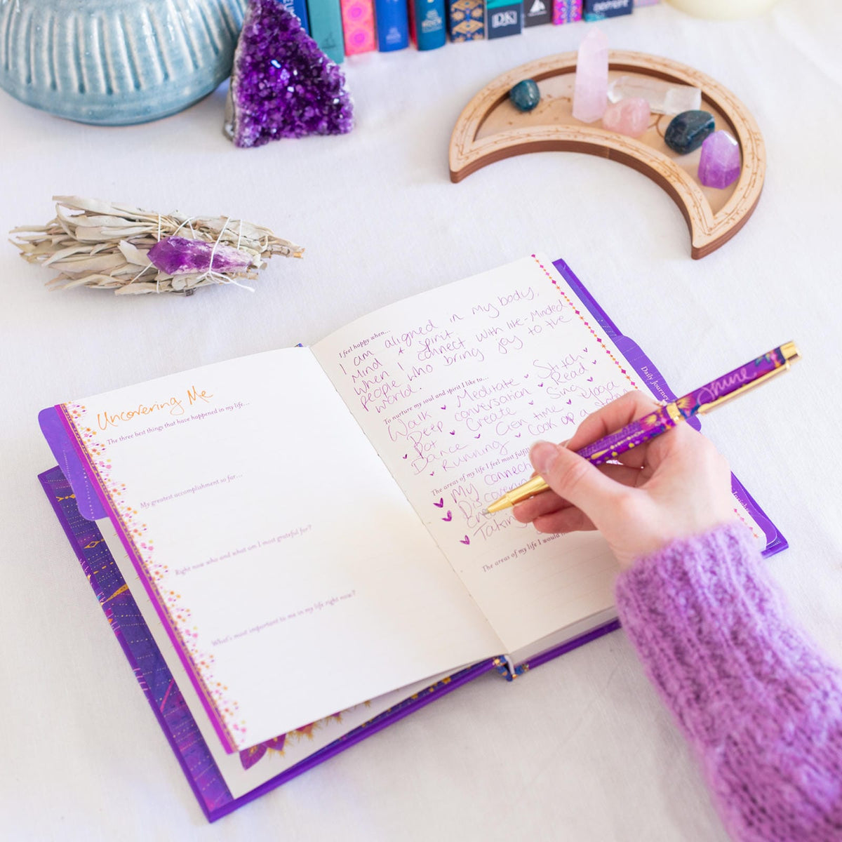 Unit price perEmbark on a transformative journey of self‑discovery with the Soul Journal by Intrinsic. This A5 hardcover journal features an astrology‑inspired design in rich purples, stamped with gold foil and accented by uplifting quotes from Australian inspiration icon Adèle Basheer. Inside you’ll find 152 pages of high‑quality 100 gsm FSC‑certified paper, organised into three tabbed sections, Uncovering Me to reflect on your present and future, Daily Journey for freewriting insights, and Monthly Insights to help you recognise patterns and shape your path.