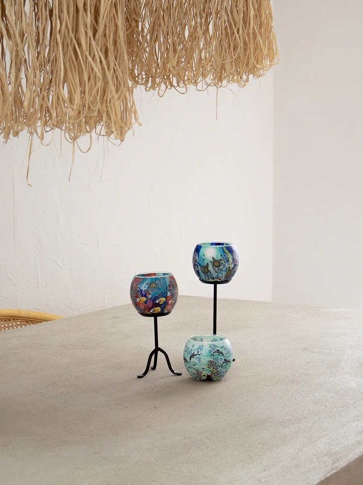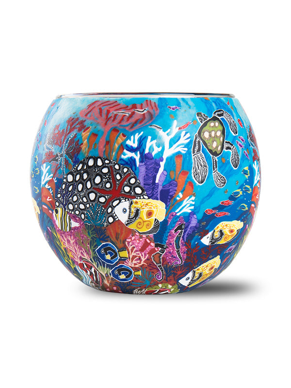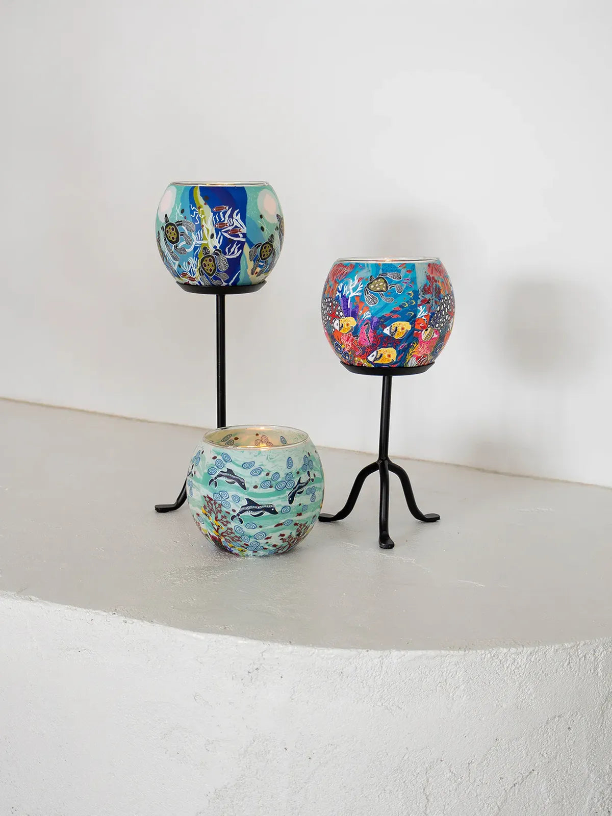 Unit price perStep into a realm of colour, pattern and cultural resonance with this “Utopia” tealight candle holder. Handcrafted in Australia from glass and clay, the design radiates when lit—bringing vibrant Indigenous art into ambient home light.