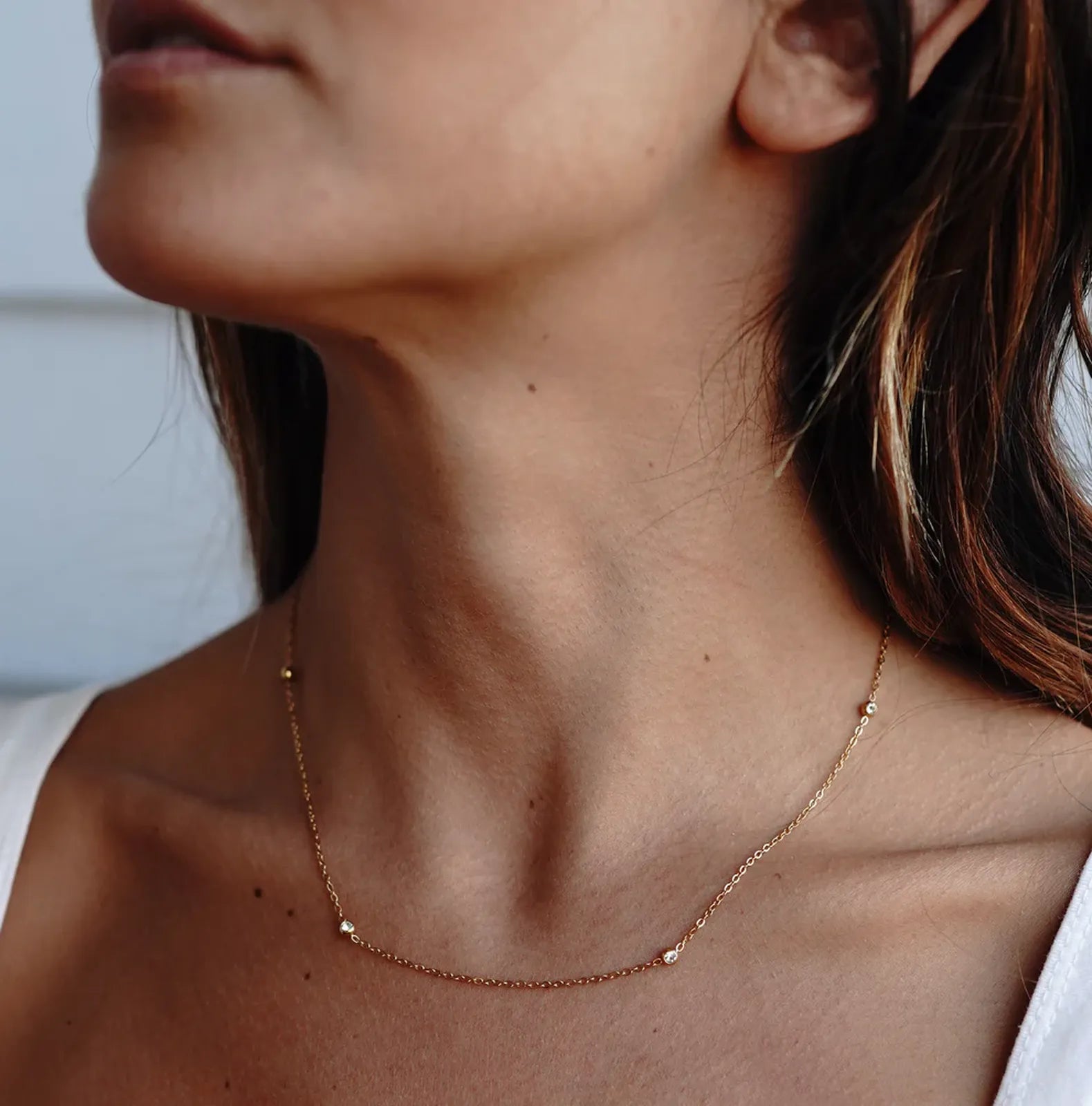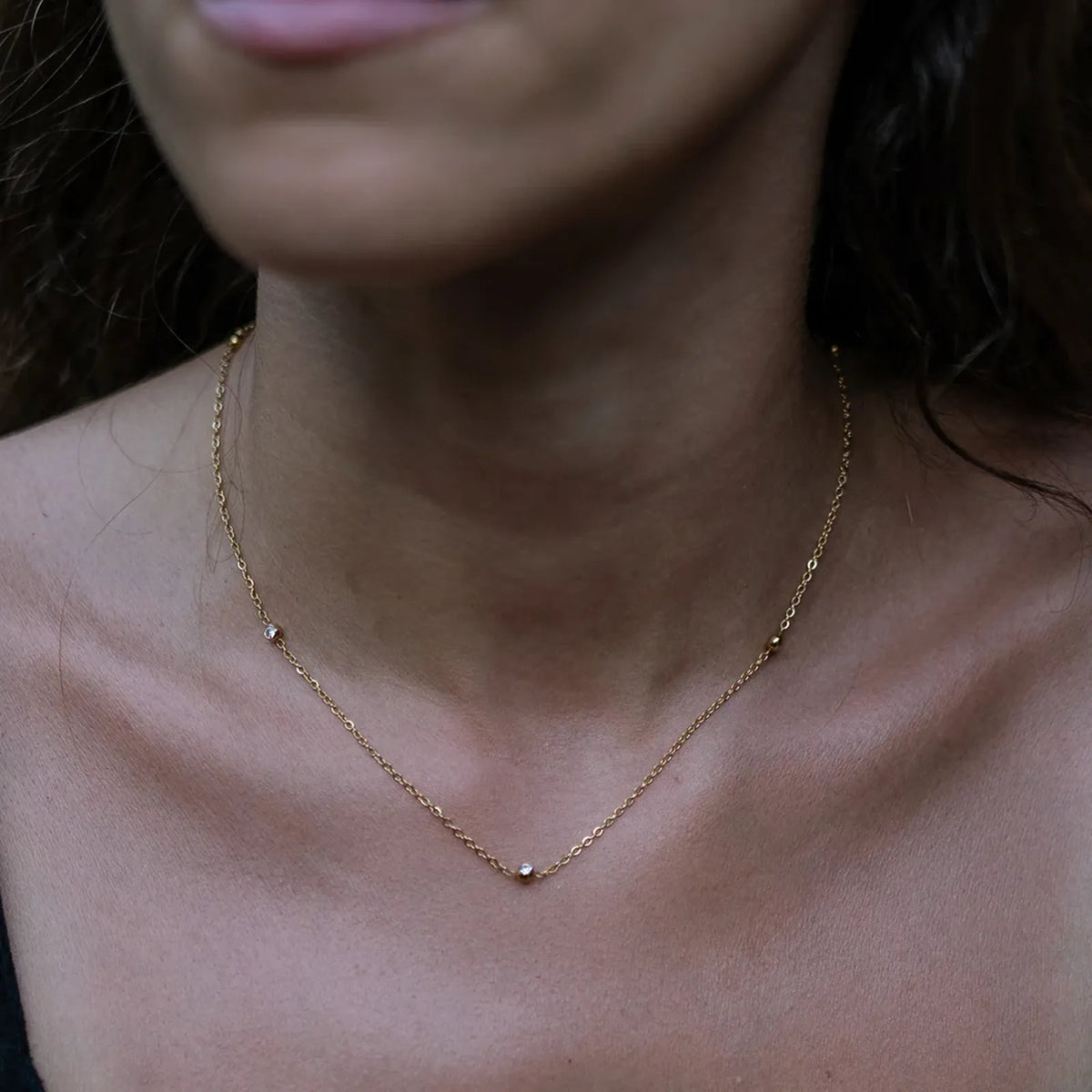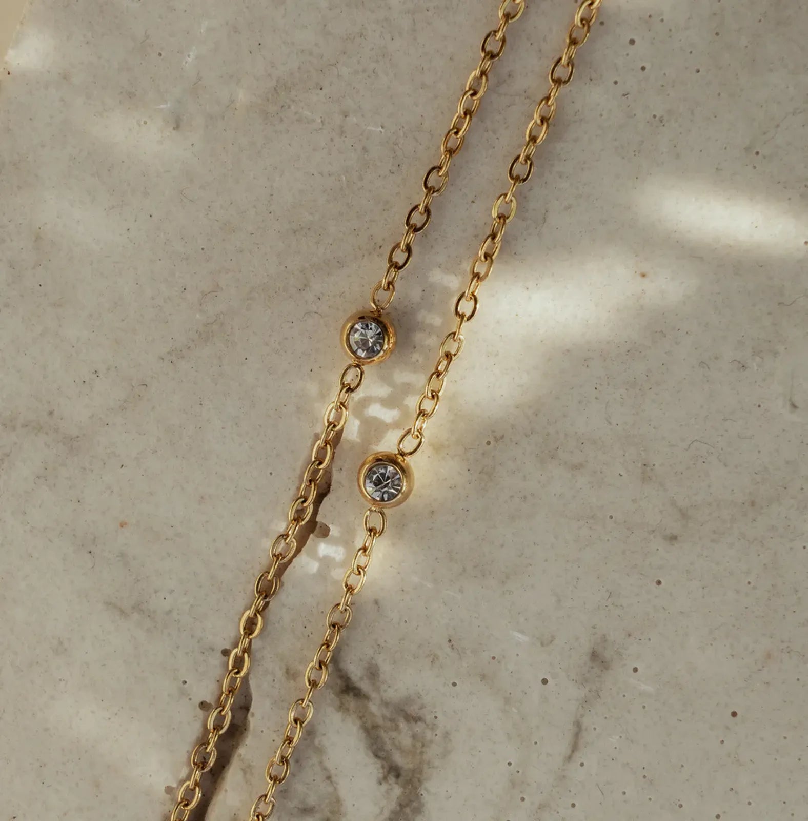 Elevate your neckline with the Dorota Zirconia Gold Necklace — a refined chain adorned with shimmering zirconia accents, crafted for everyday luxury.