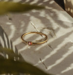 Rich and striking, the Elvira Ring showcases a burgundy gemstone.