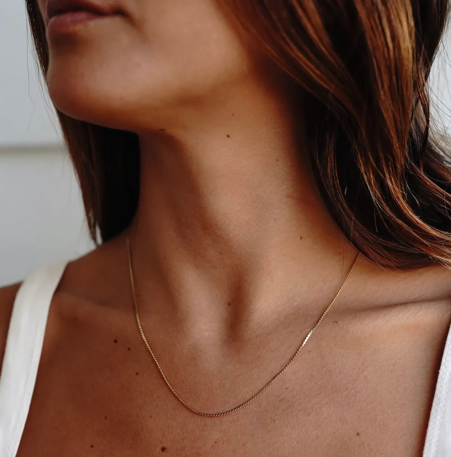 The Olivie Twisted Gold Necklace features a fine twisted-link chain (length: 45 cm with an extra 5 cm extender) for flexible layering or solo wear. A sophisticated yet versatile piece that fits seamlessly into everyday elegance.