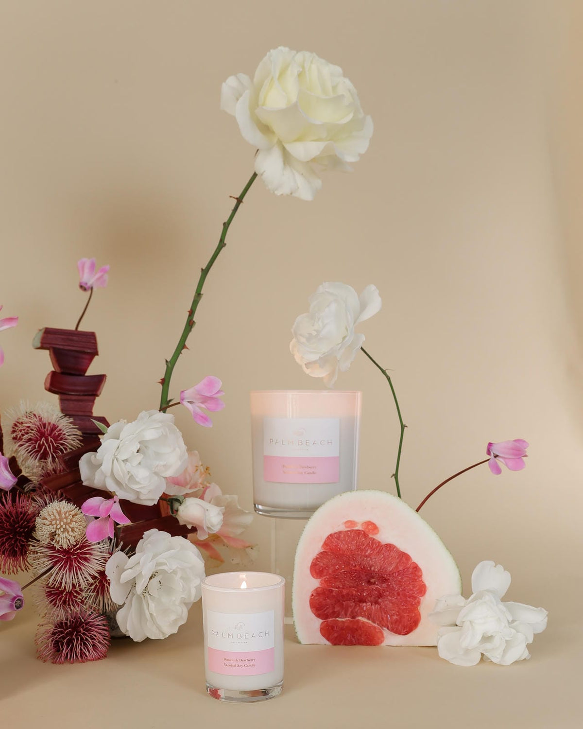 Unit price perTransport your space into a stroll through sun‑kissed spring gardens with this exquisite 90 g mini candle from the Palm Beach Collection. Bursting with vibrant top notes of tangy pomelo and juicy dewberry, layered in a heart of delicate florals and a cozy woody base of patchouli and orris, it delivers a refined yet playful fragrance experience.